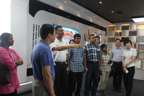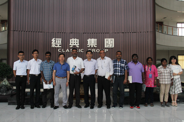 7月17日,來(lái)自巴勒斯坦、巴基斯坦、斯里蘭卡等亞洲國(guó)家行業(yè)商會(huì)領(lǐng)導(dǎo)一行到經(jīng)典集團(tuán)、卓越集團(tuán)參觀考察。經(jīng)典集團(tuán)總經(jīng)理杜福生,副總經(jīng)理鄭建康,生產(chǎn)總經(jīng)理王忠策,工會(huì)主席高建國(guó),卓越集團(tuán)行政總監(jiān)尹曙光,國(guó)際貿(mào)易部有關(guān)負(fù)責(zé)人熱情接待了來(lái)訪外賓。