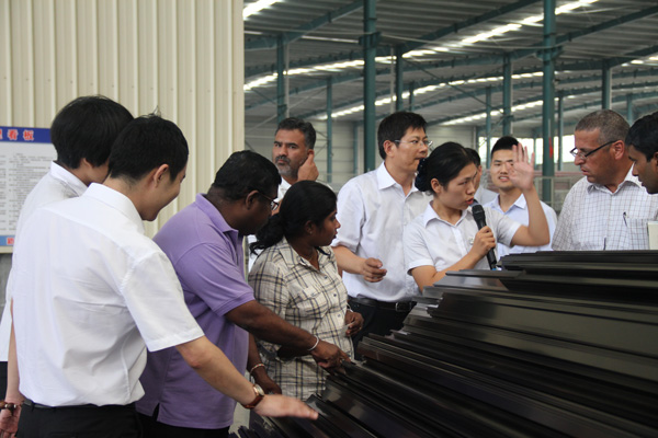 亞洲國(guó)家行業(yè)商會(huì)領(lǐng)導(dǎo)一行參觀了經(jīng)典集團(tuán)文化中心、項(xiàng)目管理中心、綜合辦公室、營(yíng)銷中心和鋼結(jié)構(gòu)制造生產(chǎn)車間,杜福生總經(jīng)理介紹了經(jīng)典集團(tuán)生產(chǎn)經(jīng)營(yíng)、技術(shù)創(chuàng)新、產(chǎn)學(xué)研合作、對(duì)外承攬工程等有關(guān)情況,并與外賓們親切交流。
