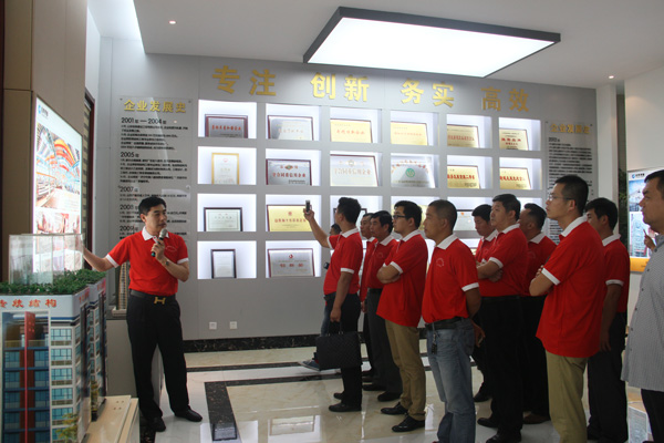 北京大學EMBA學員們興致勃勃地參觀了經典集團的辦公樓、職工活動中心和生產車間。苗董事長向學員們重點介紹了集團公司的生產經營、產學研合作、鋼結構建筑施工、紅木辦公家具、智能3D電影院、智能會議中心、愛心超市等有關情況。北京大學EMBA學員們對經典集團弘揚“經典事業 讓愛傳承”為核心的企業文化、依靠科技進步實現企業跨越發展給予高度評價。