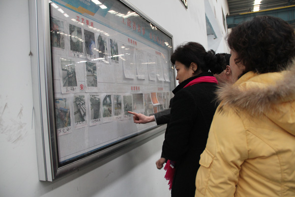 2月19日,山東省總工會(huì)女職工部李晶珠部長一行到經(jīng)典集團(tuán)檢查指導(dǎo)“查身邊隱患、保職工安全、促企業(yè)發(fā)展” 活動(dòng)開展情況,濟(jì)寧市總工會(huì)副主席李民,女職工委員會(huì)主任李惠敏,濟(jì)寧市兗州區(qū)委常、委宣傳部長初建偉,區(qū)總工會(huì)主席王福偉,經(jīng)典集團(tuán)董事長苗樹文、工會(huì)主席高建國及鎮(zhèn)街有關(guān)負(fù)責(zé)人陪同了此次活動(dòng)。