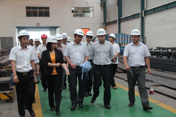 建設公司周超董事長陪同考察團領導參觀生產車間