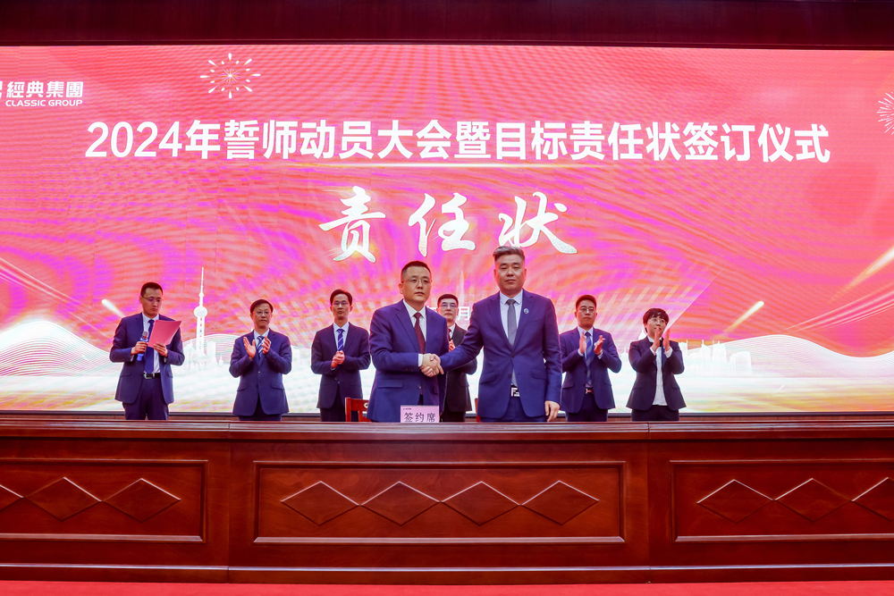 凝心聚力 迎勢啟航|經(jīng)典集團2024年誓師動員大會暨目標責任狀簽訂儀式成功召開